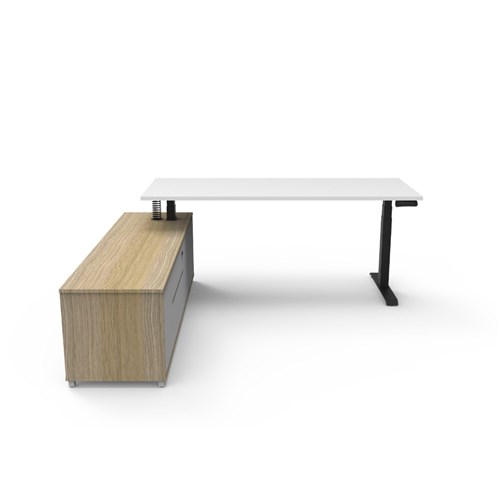 Rapidline Boost+ Executive Desk + LHS Cabinet 2020W x 1936D x 620-1270mmH Oak/Black