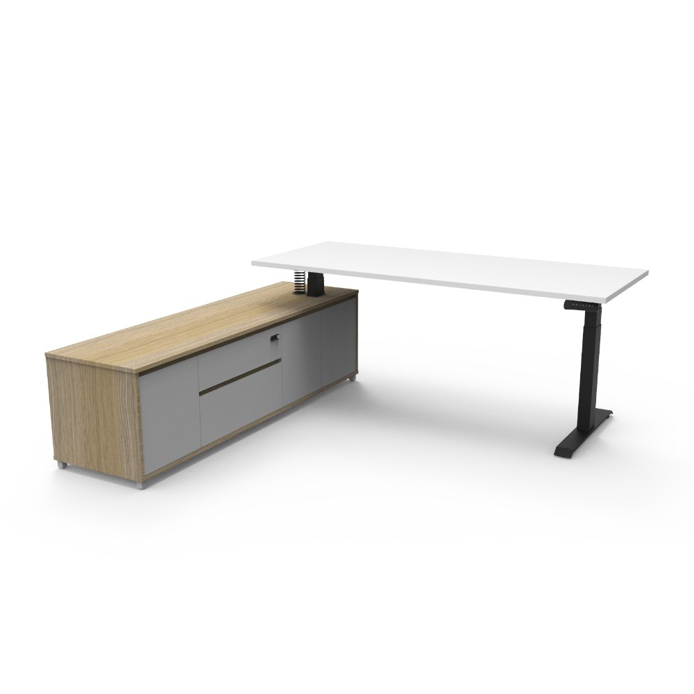 Rapidline Boost+ Executive Desk + LHS Cabinet 2020W x 2011D x 620-1270mmH Oak/Black