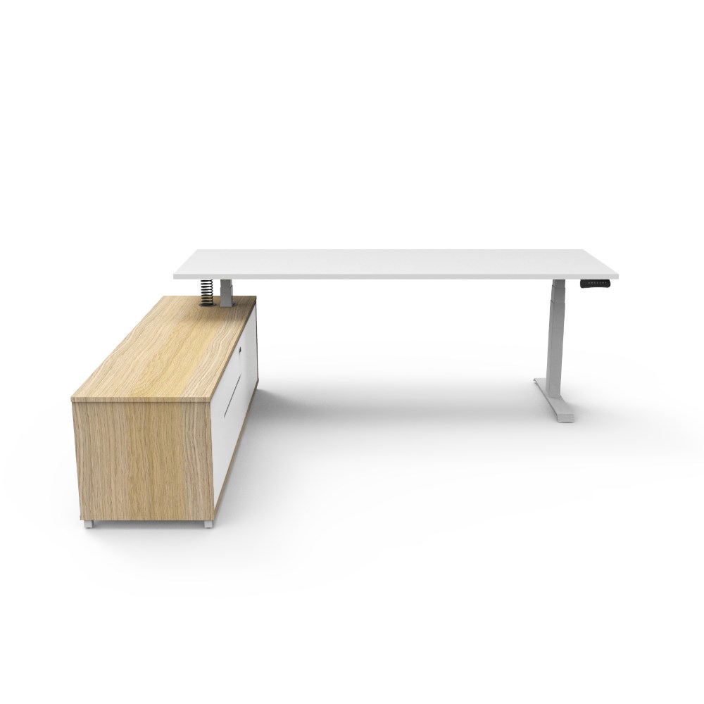 Rapidline Boost+ Executive Desk + LHS Cabinet 2270W x 1936D x 620-1270mmH Oak/White