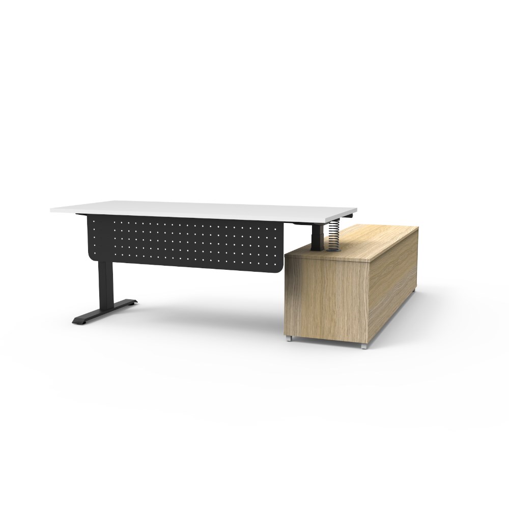 Rapidline Boost+ Executive Desk + LHS Cabinet+Panel 2020W x 1936D x 620-1270mmH Oak/Wht