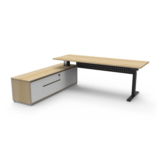 Rapidline Boost+ Executive Desk + LHS Cabinet+Panel 2270W x 1936D x 620-1270mmH Oak/Wht