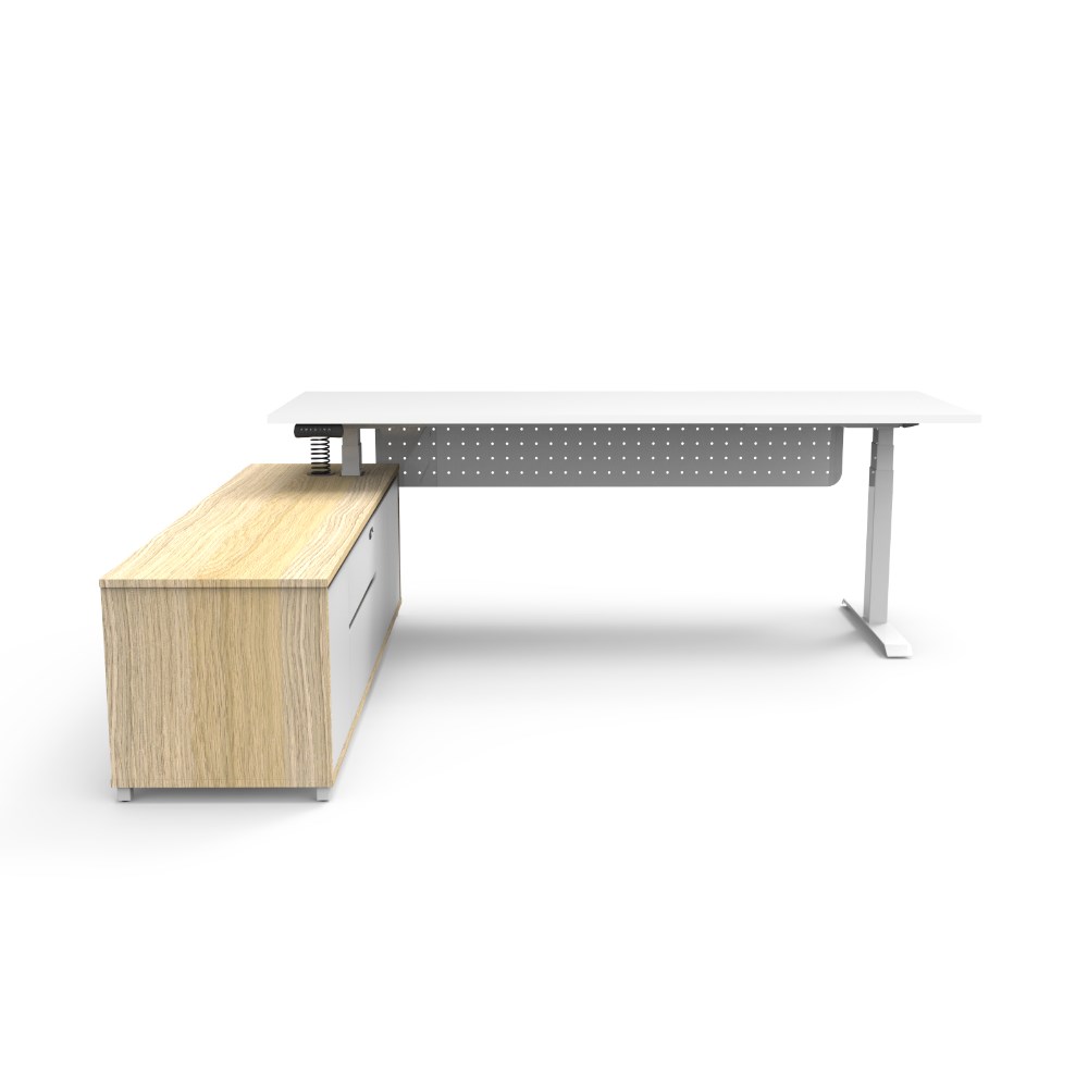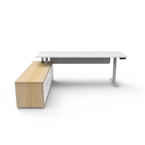 Rapidline Boost+ Executive Desk + LHS Cabinet+Panel 2270W x 1936D x 620-1270mmH Oak/Wht