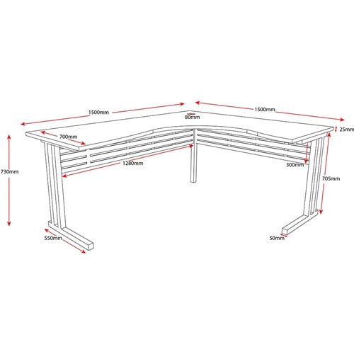 Rapidline C Leg Corner Workstation 1500/1500W x 700D x 730mmH Beech/Silver