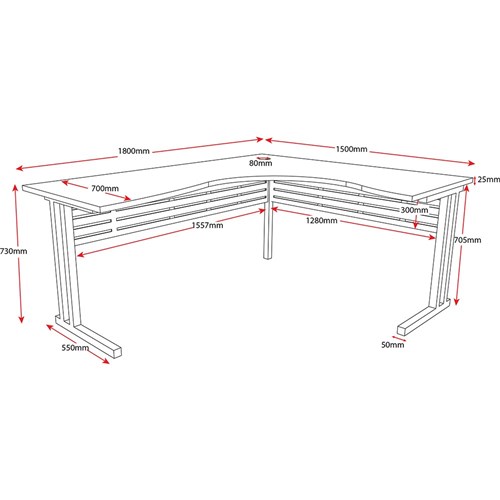 Rapidline C Leg Corner Workstation 1800/1500W x 700D x 730mmH Beech/Silver