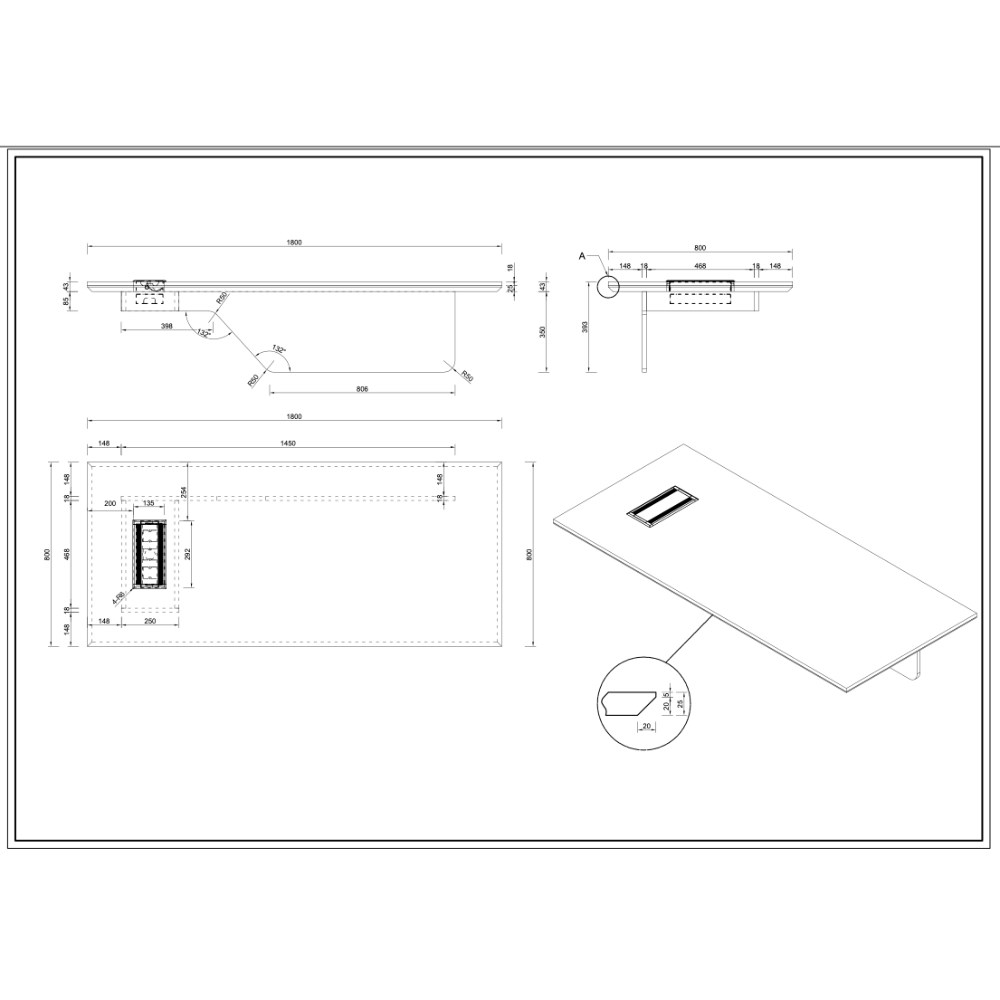 Top Dimensions: 1800W x 800D x 25mmH.