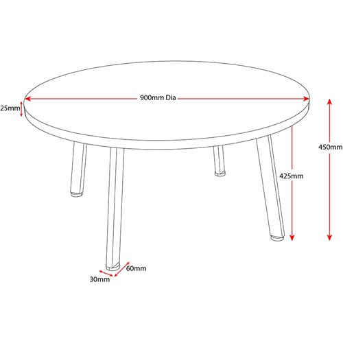Rapidline Eternity Round Coffee Table 900D x 450mmH Cherry Top Black Base