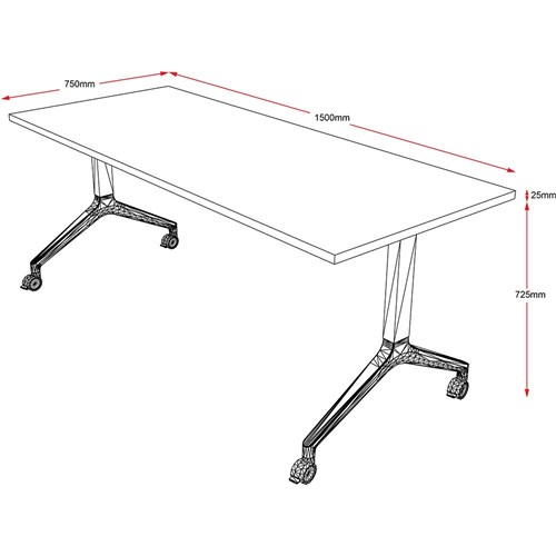Rapidline Flip Top Table 1500W x 750D x 730mmH Cherry Top Silver Frame