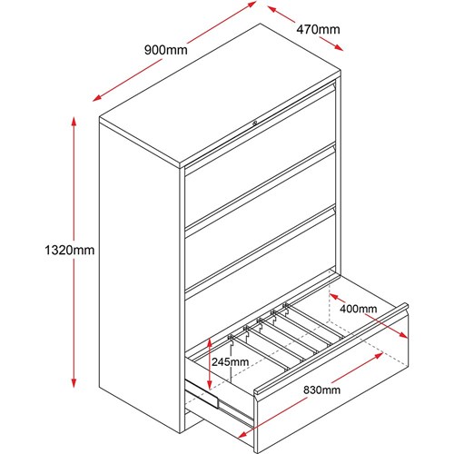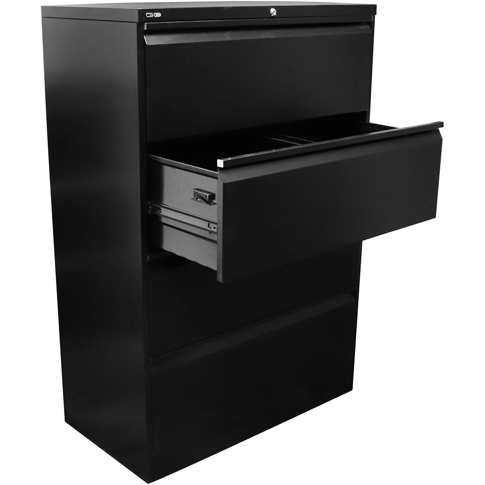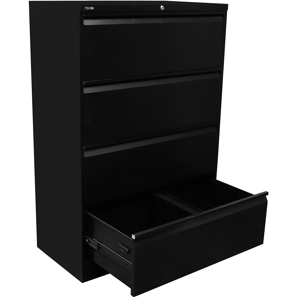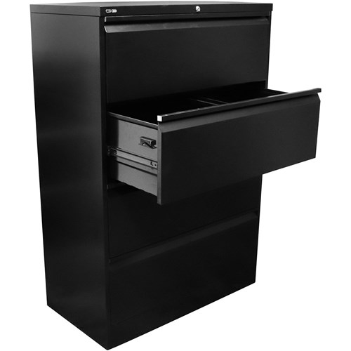 Rapidline Go Lateral Filing Cabinet 4 Drawer 900W x 473D x 1321mmH Black