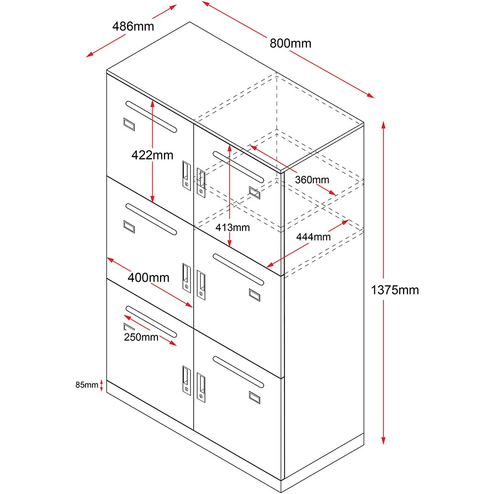 Individual locker size 360W x 470D x 420mmH.