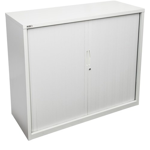 Rapidline Go Tambour Door Cupboard Includes 2 Shelves 1200W x 473D x 1016mmH White