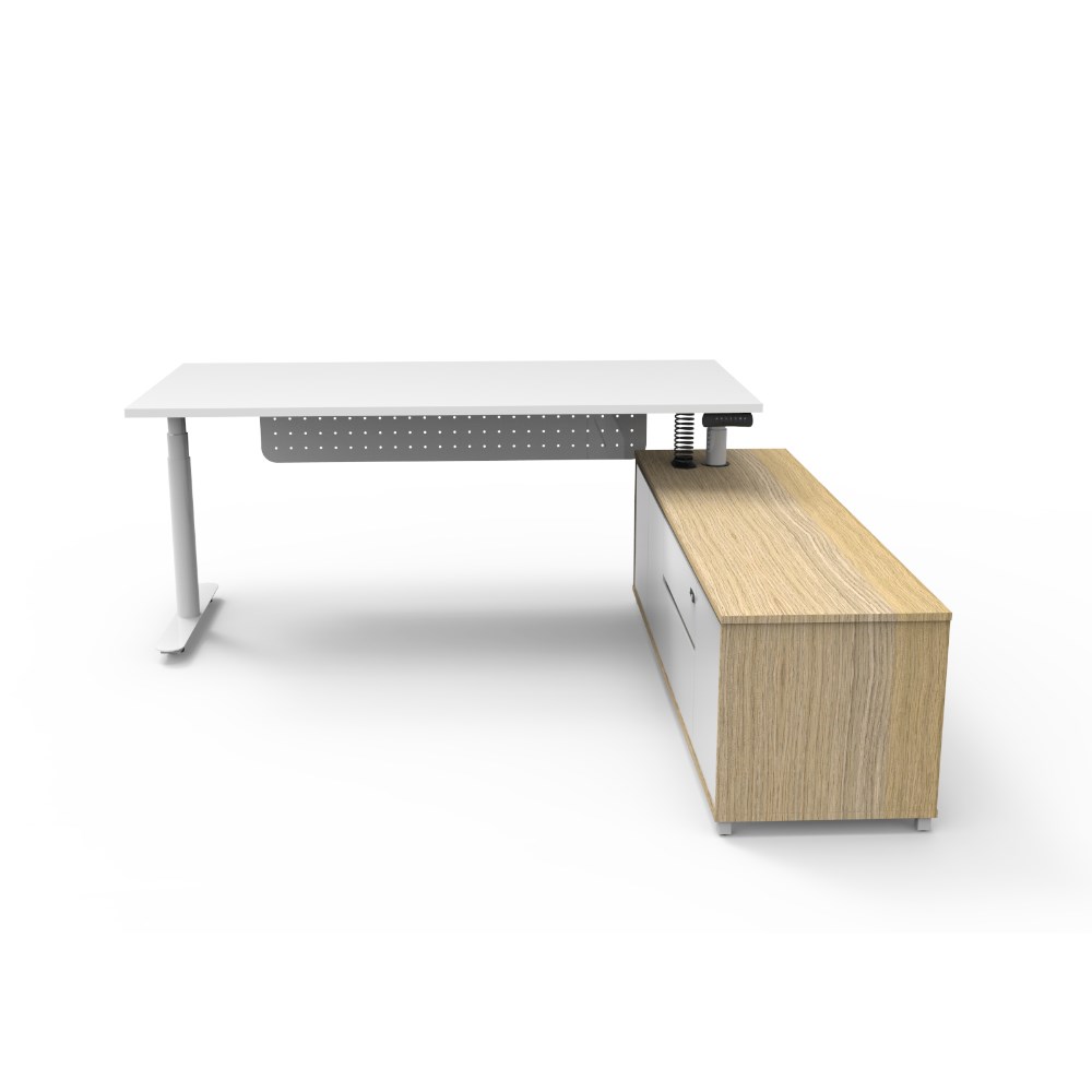 Rapidline Halo+ Executive Desk + RHS Cabinet + Panel 2020W x 1936D x 620-1270mmH Oak/White
