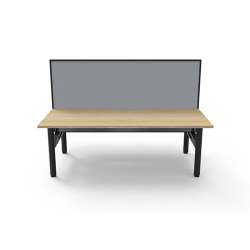 Natural Oak top Black Satin frame. Double sided workstation with screen.