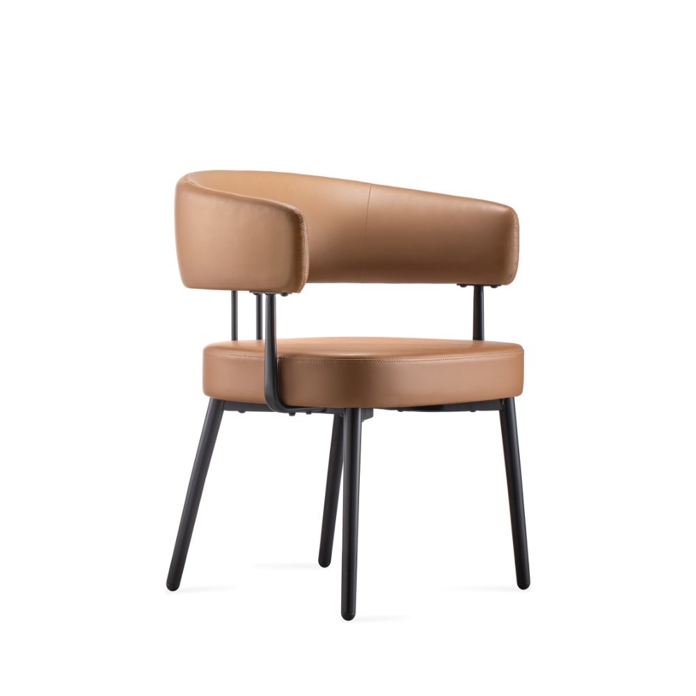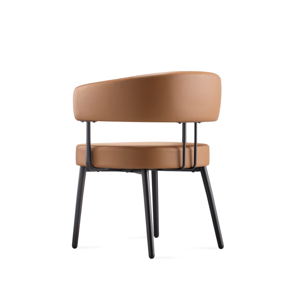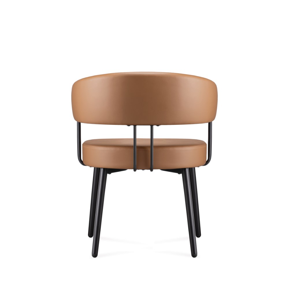 Robust steel 4 leg frame finished in black powder coat Amber PU leather seat.