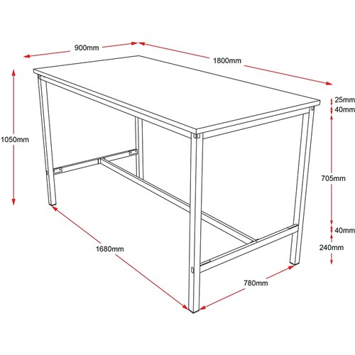Rapidline High Bar Table 1800W x 900D x 1050mmH White Top Black Frame