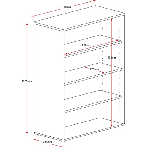 Rapidline Rapid Worker Bookcase 3 Shelves 900W x 315D x 1200mmH Cherry And Ironstone