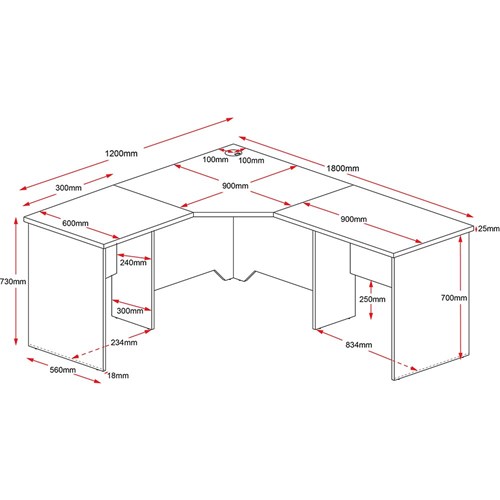 Rapidline Rapid Worker Corner Workstation 1200/1800W x 600D x 730mmH Cherry And Ironstone