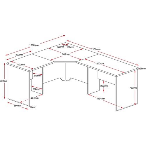 Rapidline Rapid Worker Corner Workstation 1200/2100W x 600D x 730mmH Cherry And Ironstone