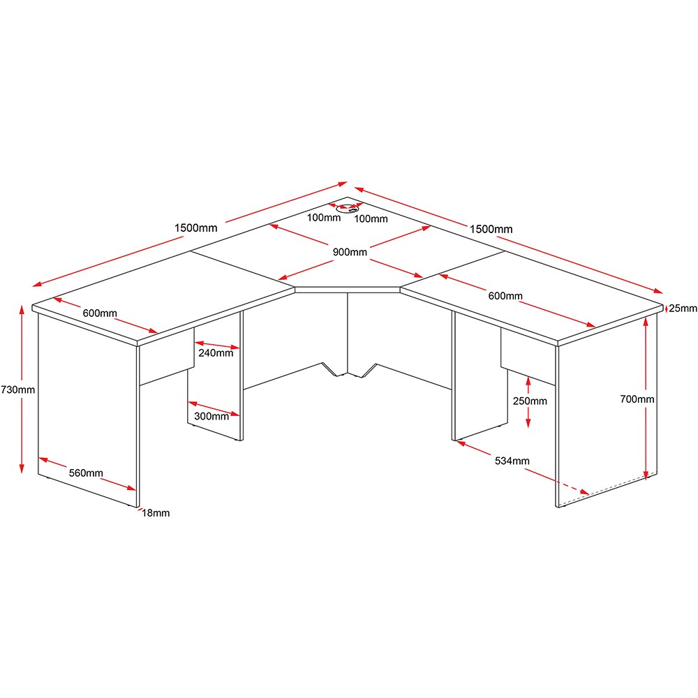 3 piece corner workstation.