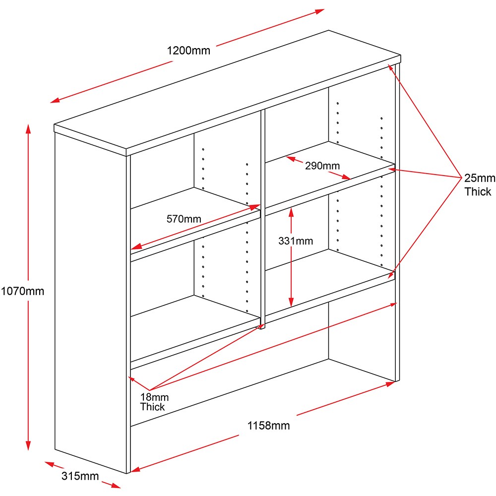 Rapidline Rapid Worker Overhead Hutch 1200W x 315D x 1070mmH Cherry And Ironstone