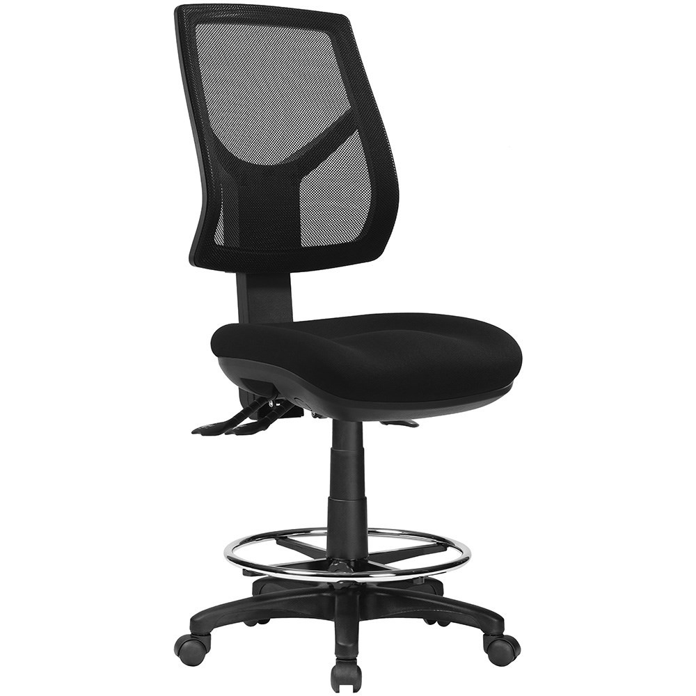Rio High Back Drafting Chair 3 Lever 640-980mmH Mesh Back Black Fabric Seat