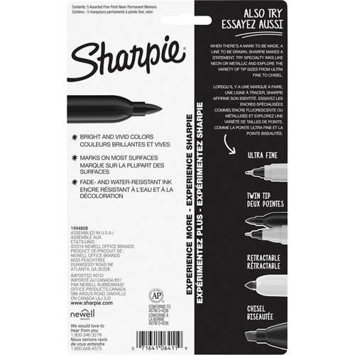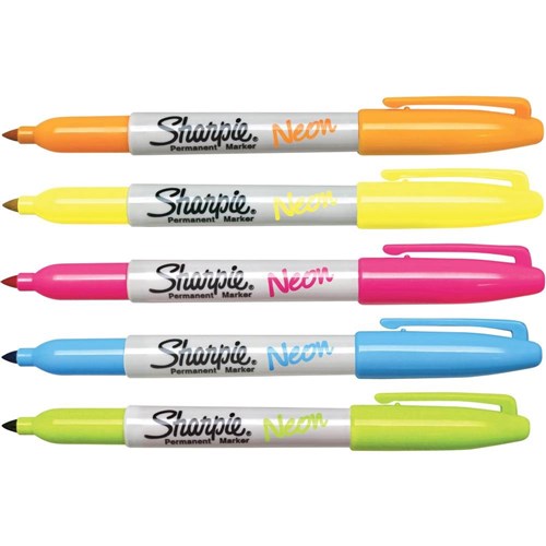 Sharpie Fine Point Marker Permanent 1.0mm Neon Assorted Pack of 5