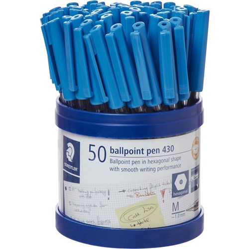 Staedtler 430 Stick Ballpoint Pens Medium 1mm Blue Cup of 50