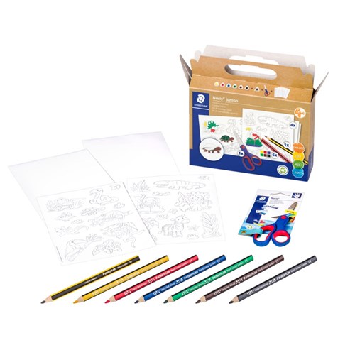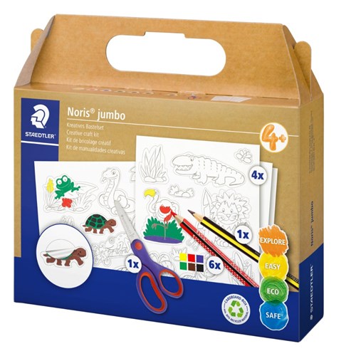 61 C3 contains: 4 x sticker sheets with wildlife figures, 6 x Noris jumbo colouring pencils, 1 x Noris graphite pencil, 1 x Noris crafting scissors.