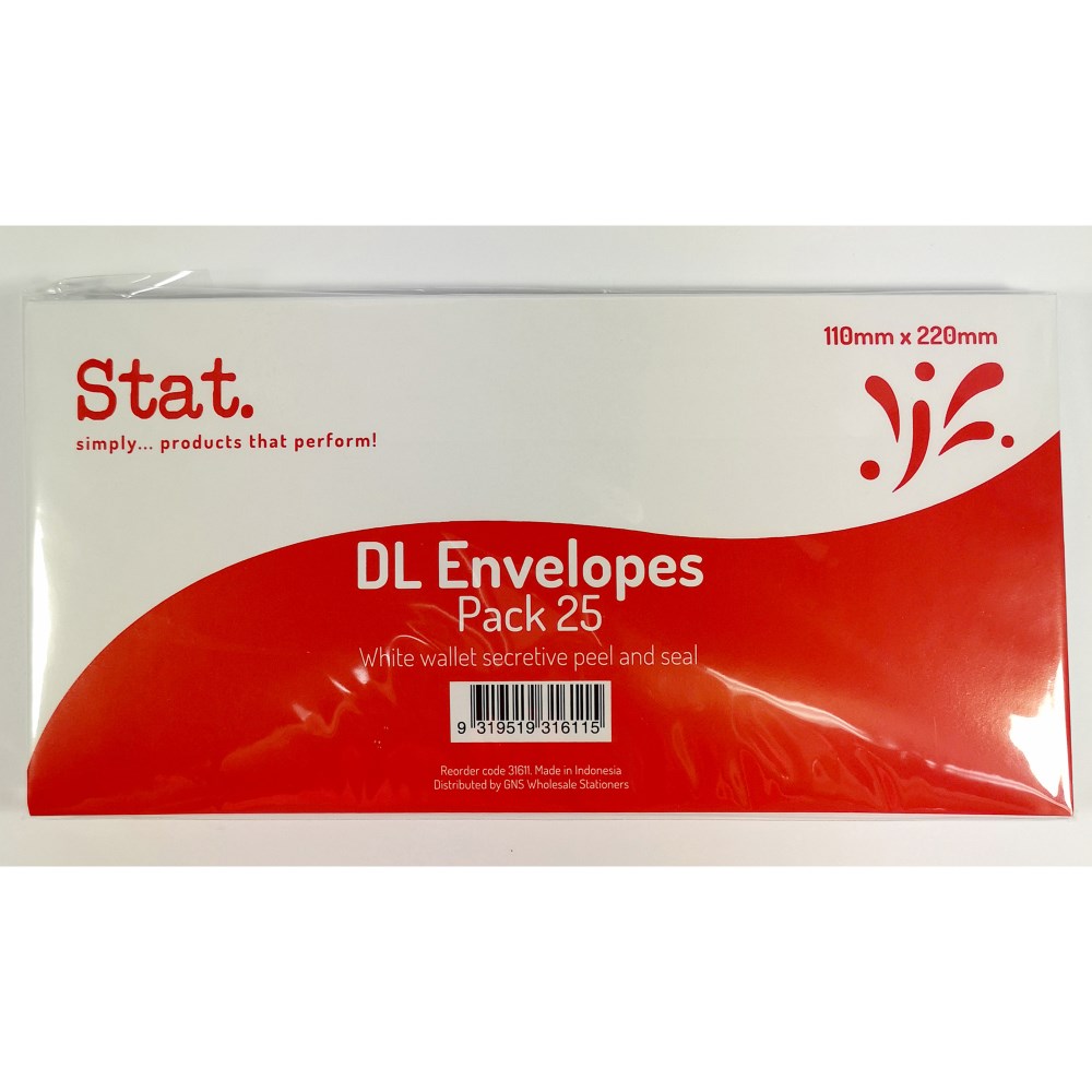 Stat Peel And Seal Envelope DL Secretive White Pack of 25