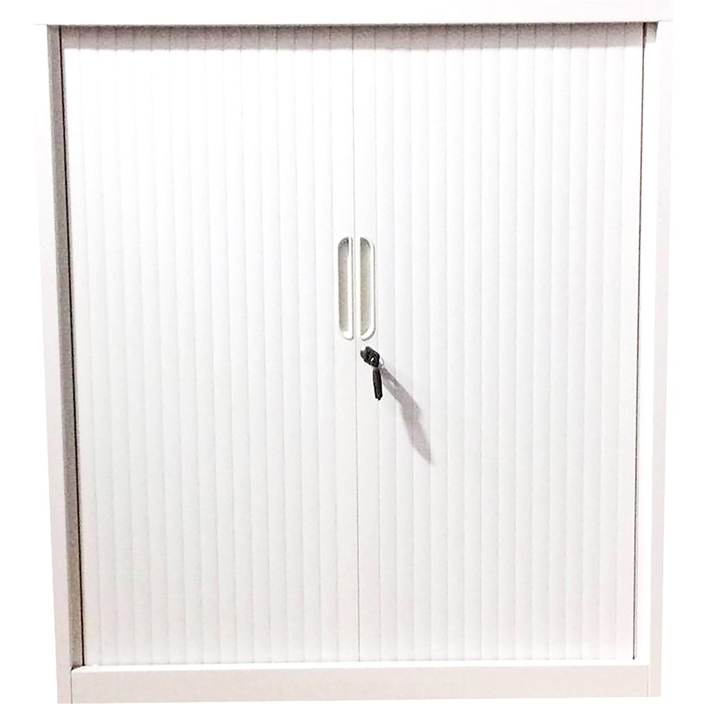 Steelco Tambour Door Cupboard Includes 2 Shelves 900W x 463D x 1015mmH White Satin