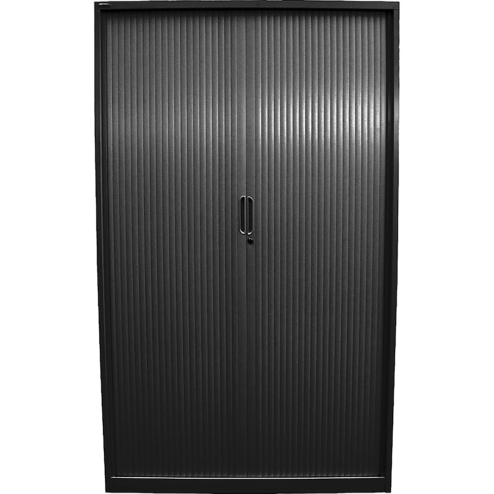 Steelco Tambour Door Cupboard Includes 5 Shelves 1200W x 463D x 2000mmH Black Satin