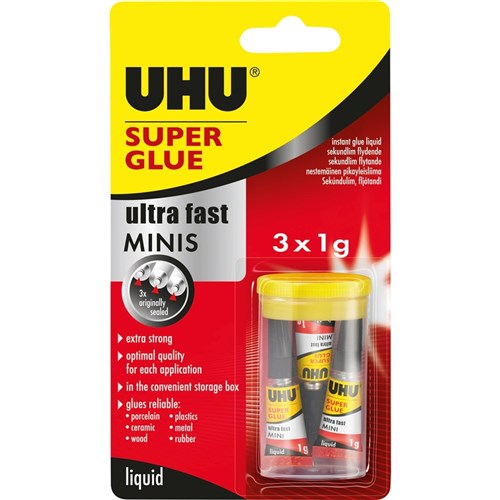UHU Superglue Mini's 3x1ml Tubes Carded