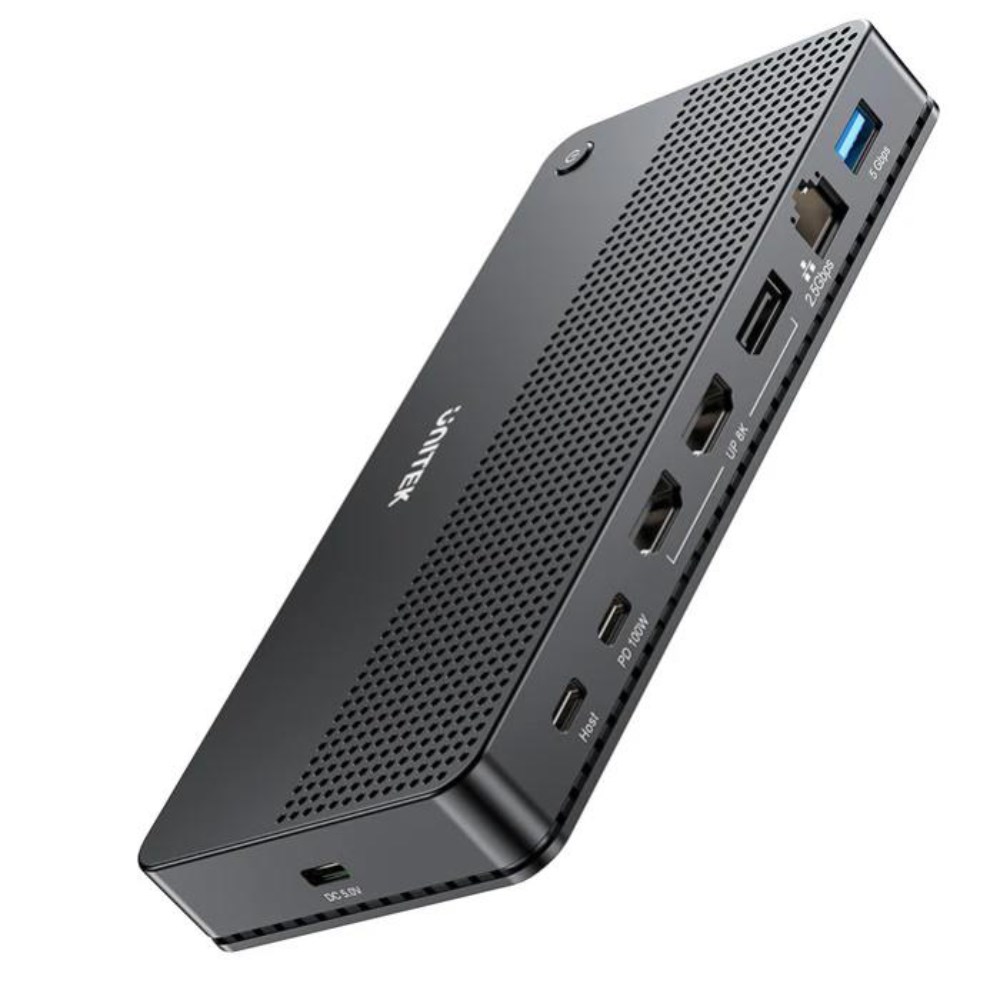 UNITEK USB-C Single 8K/ Triple 4K Docking Station features power on/ off button.