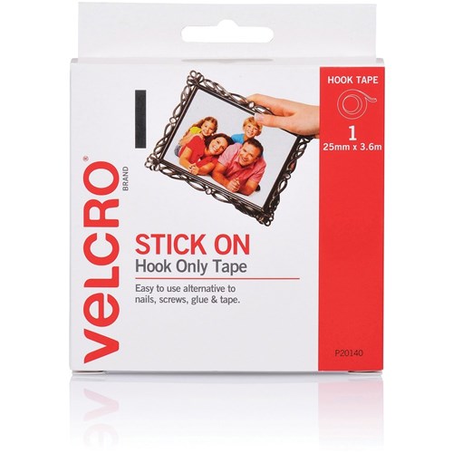 Velcro Brand Stick On Hook Only 25mm x 3.6m Tape With Dispenser White
