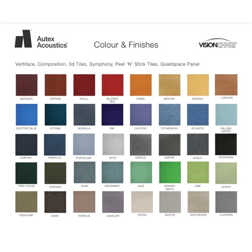 • Available in a large range of Autex Vertiface colours.