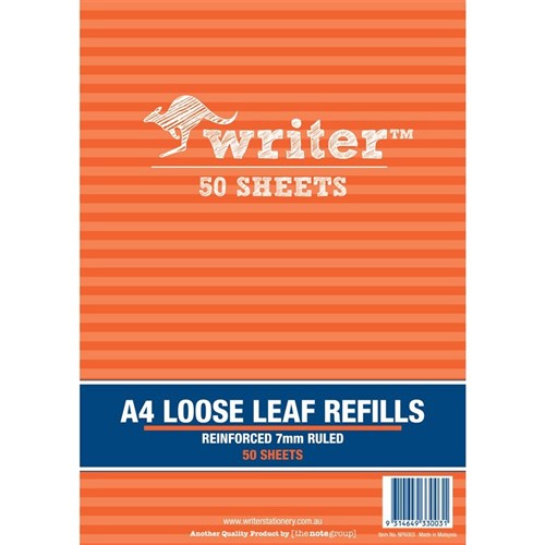 Writer Binder Refills A4 7mm Ruled Reinforced Pack of 50